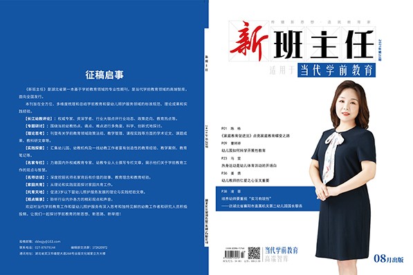 P01 陈 栋 《家庭教育促进法》点亮家庭教育蝶变之路 P09 曹婷婷 幼儿园如何科学开展性教育 P23 马 雯 热身运动是幼儿体育运动的开场白 P36 姜 勇 幼儿教师的仁爱之心至关重要 P38 凌 蓉 培养幼师要重视“实习有效性” ——访湖北省襄阳市直属机关幼儿园园长黎燕